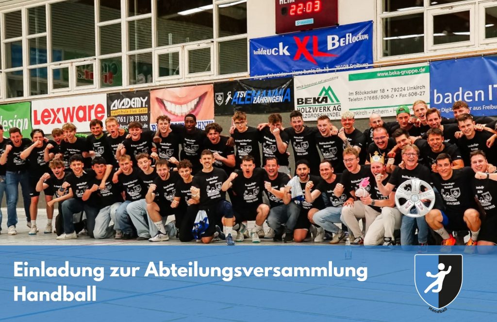 Liebe Mitglieder der Handballabteilung, hiermit ergeht die förmliche Einladung zur Abteilungsversammlung am Montag, den 23. Juni 2025, 19:00 Uhr in der Vereinsgaststätte „Im Hinterkirch“/Saal Tangoclub Hinterkirchstr. 21, 79108 Freiburg. Tagesordnung: Eröffnung durch Abteilungsleitung Gedenken der Verstorbenen Wahl des Protokollführers-/ führerin Verlesung bzw. Auslage des Protokolls 2024 Geschäftsbericht der Abteilungsleitung Geschäftsbericht des Kassenwartes […]