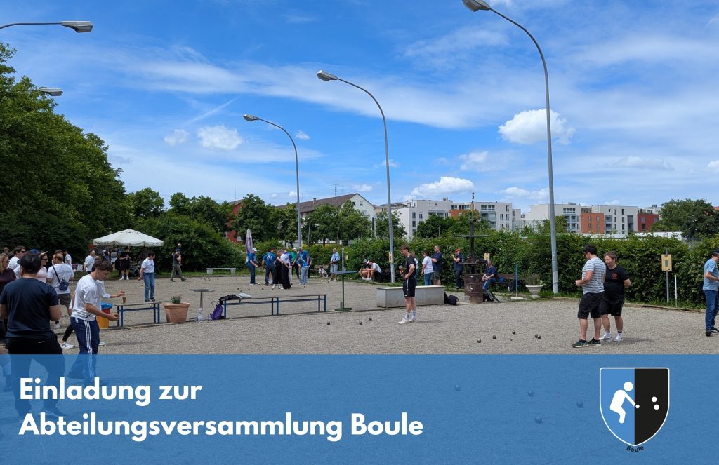 Liebe Mitglieder, hiermit lade ich euch im Namen der Abteilungsleitung der Boule-Abteilung in Zähringen ganz herzlich zur Mitgliederversammlung am 9.02.2026 um 19:00 Uhr im Seminarraum der Geschäftsstelle, Hinterkirchstr. 21 ein. Tagesordnung:● Begrüßung und Eröffnung mit Totengedenken● Feststellung der ordnungsgemäßen Einladung● Feststellung der Beschlussfähigkeit● Annahme der Tagesordnung● Berichte mit anschließender Aussprachea) Bericht des Abteilungsleitersb) […]
