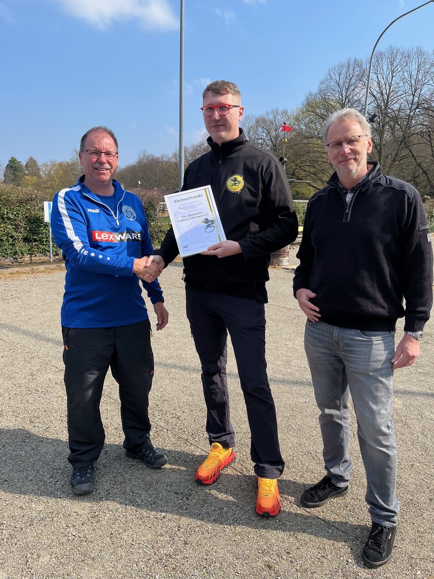 Zur Einweihung begrüßte Abteilungsleiter Heiner Brecht zahlreiche Gäste, darunter auch Vereinspräsident Frank Pfaff sowie den Präsidenten des Bouleverbands Baden-Württemberg Kai Kutsch. In ihren Grußworten würdigten sie insbesondere das große Engagement der Abteilung und die Bedeutung des Boulesports innerhalb unseres Vereins. Ein besonderer Moment war zudem die Ehrung für 25 Jahre Mitgliedschaft im Verband. Bei bestem Wetter wurde die Anlage im Anschluss auch direkt genutzt, zunächst in geselliger Runde, bevor die ersten Kugeln auf den Plätzen gespielt wurden.