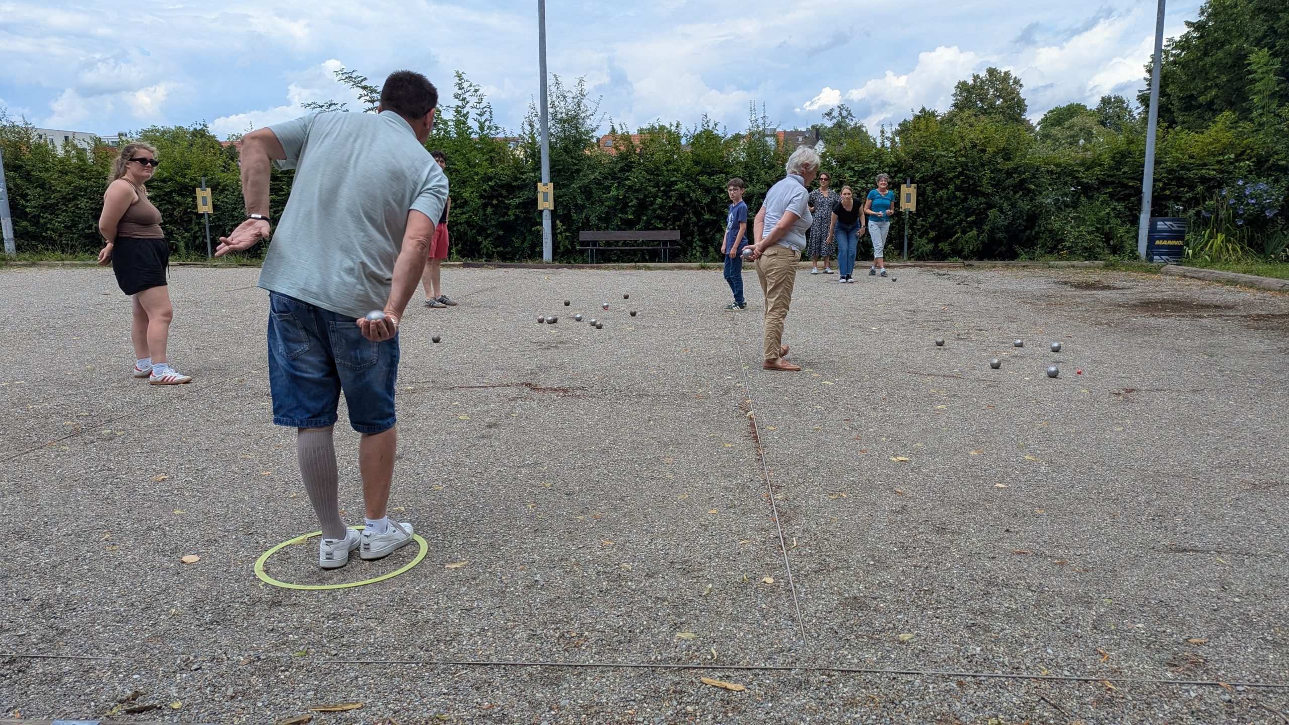 Bei bestem Sommerwetter wurde geworfen, ausprobiert und viel gelacht. Einige standen zum ersten Mal auf einer Boule-Bahn, andere brachten bereits ein wenig Erfahrung mit. Im Mittelpunkt standen der Spaß und das gesellige Miteinander.