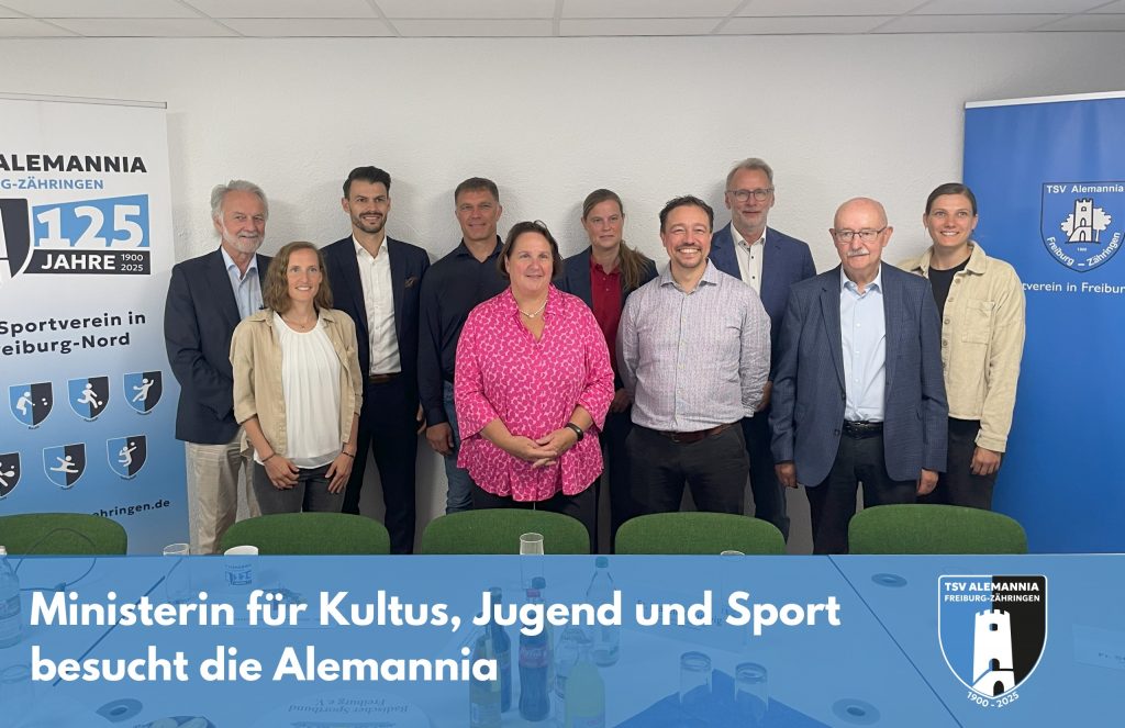 Am 04. September 2025 durften wir auf unserem Vereinsgelände einen besonderen Gast begrüßen: Frau Theresa Schopper, Ministerin für Kultus, Jugend und Sport des Landes Baden-Württemberg, machte sich vor Ort ein Bild von der Alemannia und unseren Rahmenbedingungen. Im Mittelpunkt ihres Besuchs stand ein Austausch zum Thema Mädchen- und Frauenfußball, der in einer größeren Gesprächsrunde […]