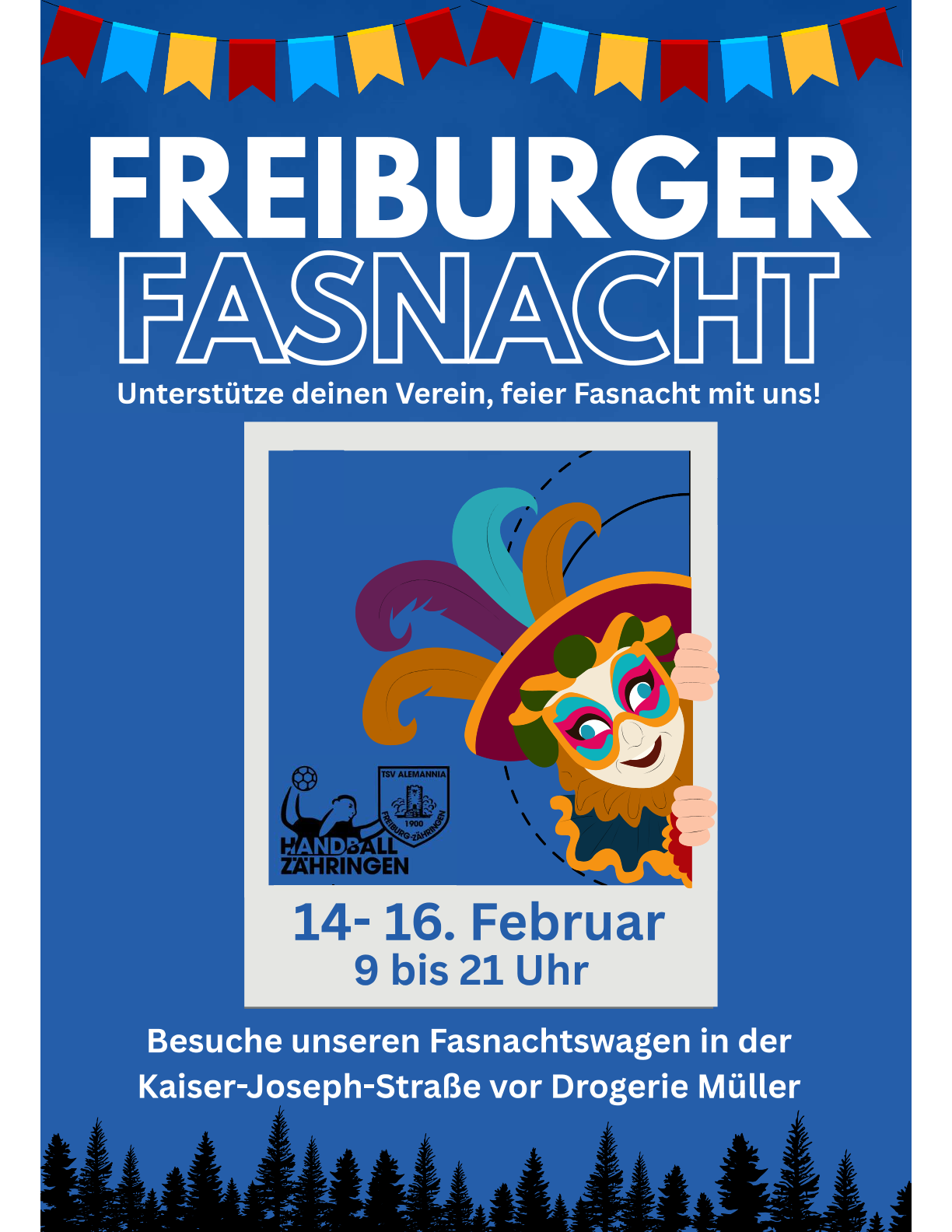 Auch in diesem Jahr ist der TSV Alemannia Freiburg-Zähringen wieder mit Verkaufsständen auf der Freiburger Straßenfasnacht vertreten.